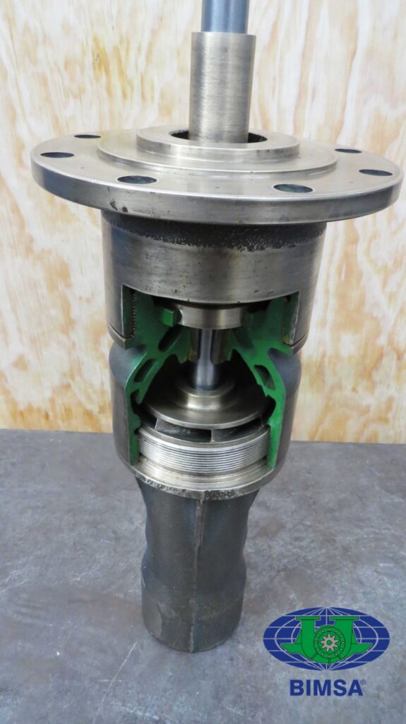 La construcción de la columna con bridas proporciona una alineación positiva del eje, además facilita el montaje y desmontaje. Las flechas de línea se sostienen dentro de la columna mediante chumaceras de hule espaciadas para proporcionar una operación libre de vibraciones y para garantizar el buen funcionamiento de los sellos mecánicos, cuando aplique.